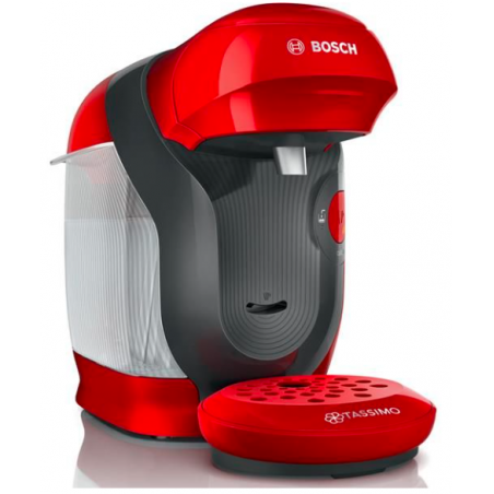 Cafetière multi-boissons - Tassimo Style - Une machine à boissons petite par la taille mais grande par la saveur ! - Des dimensions compactes (26.5 x 17.1 x 32 cm) et un design moderne ! - Une boisson parfaite grâce à la technologie unique de reconnaissance du code-barre - Machine entièrement automatique : un clic et c'est prêt ! - Technologie T-Discs unique et brevetée : le système ajuste automatiquement le volume d'eau, la température, le temps de préparation et s'arrête automatiquement lorsque la boisson est prête - Personnalisation de la boisson grâce au mode Manuel : vous pouvez allonger ou raccourcir la boisson pendant sa préparation - Bouton de commande unique - Indicateurs lumineux pour suivre la préparation - Repose-tasse amovible et ajustable sur 2 niveaux - Réservoir d'eau amovible 0.7 L intégré sur le côté - Nettoyage vapeur systématique après chaque boisson : pas de transfert de goût - Pas de temps de préchauffage ni de temps d'attente entre 2 boissons grâce au système Thermoflux - Programmes de détartrage et de nettoyage automatique (T-Disc de service) - Choix unique de plus de 40 boissons de grandes marques : café, expresso, café crème, cappuccino, latte macchiatto, chocolat chaud, thé, etc... - Arrêt automatique après 90 secondes - 3.3 bars - Coloris Rouge - Puissance 1400 W - Garantie 2 ans.